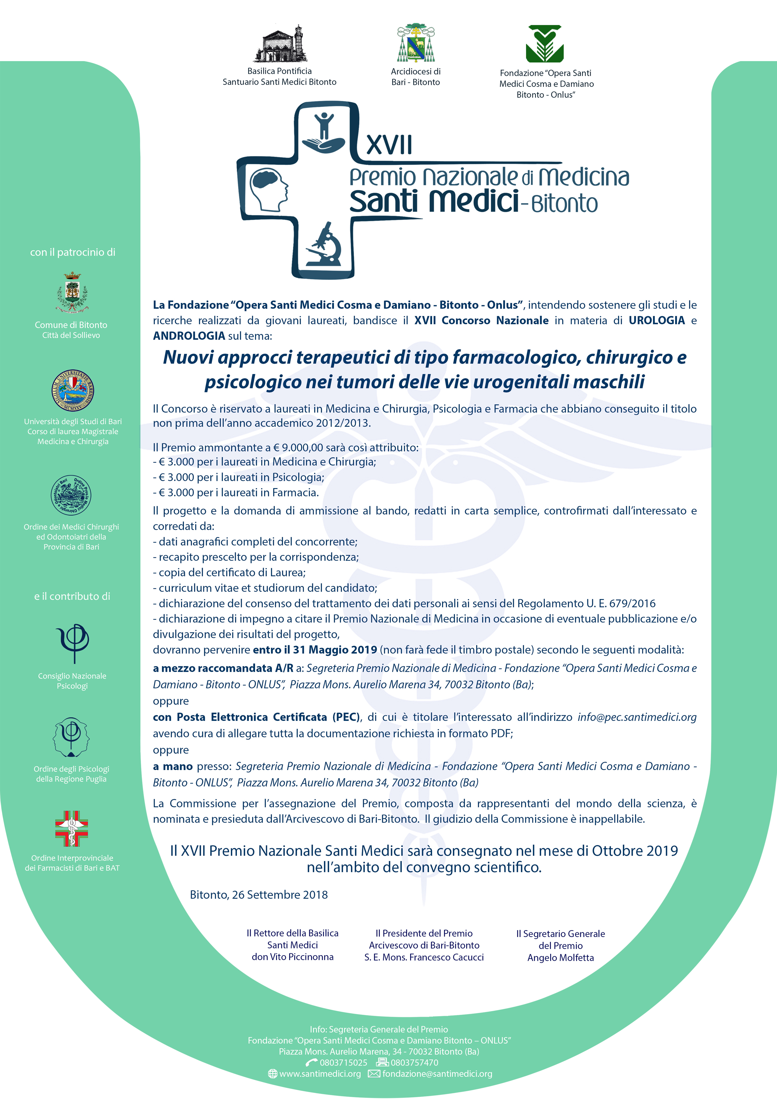 Bando di Concorso – XVII Premio Nazionale di Medicina, Psicologia e farmacia
