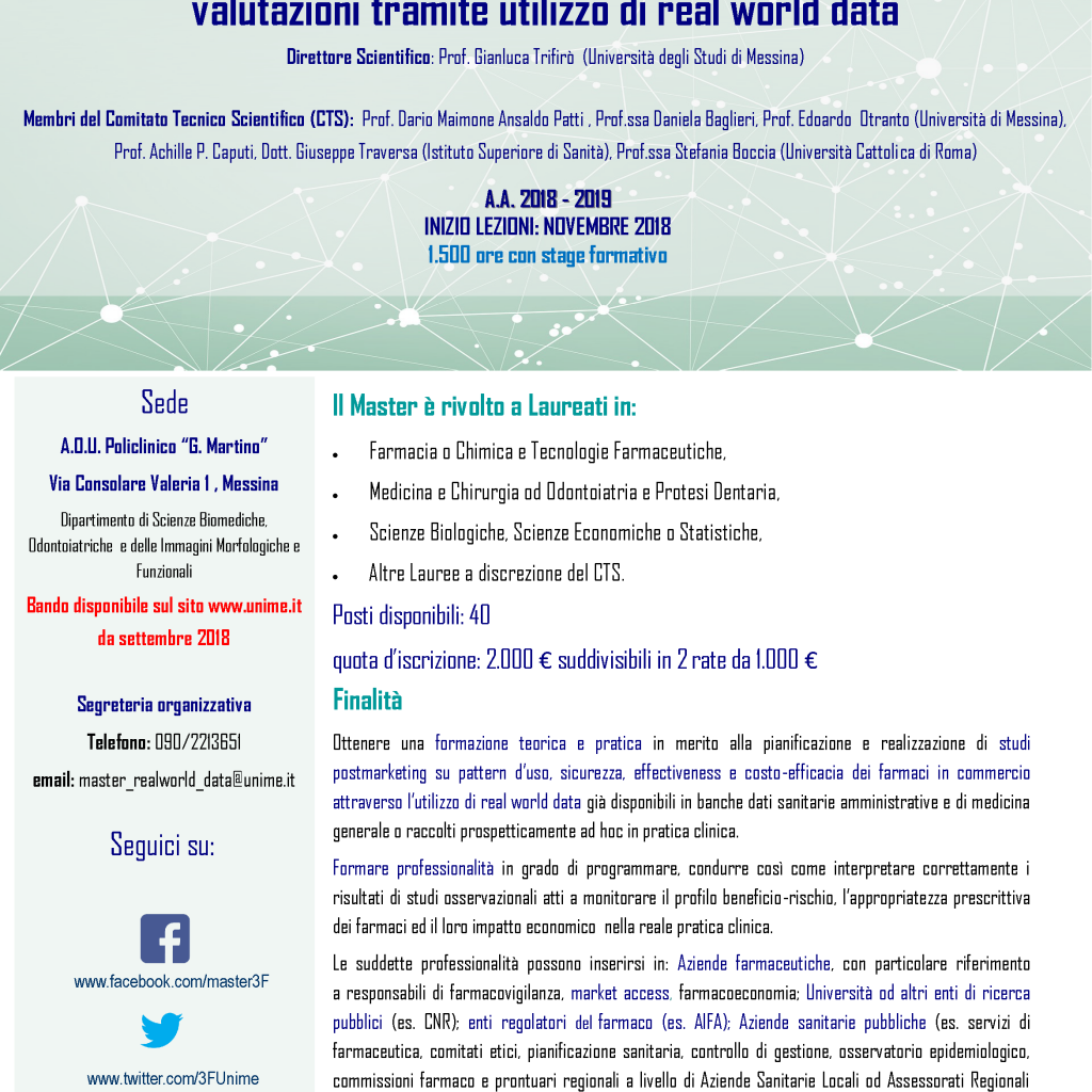 Master di II livello in “Farmacovigilanza, Farmacoepidemiologia e Farmacoeconomia: valutazioni tramite utilizzo di real world data”