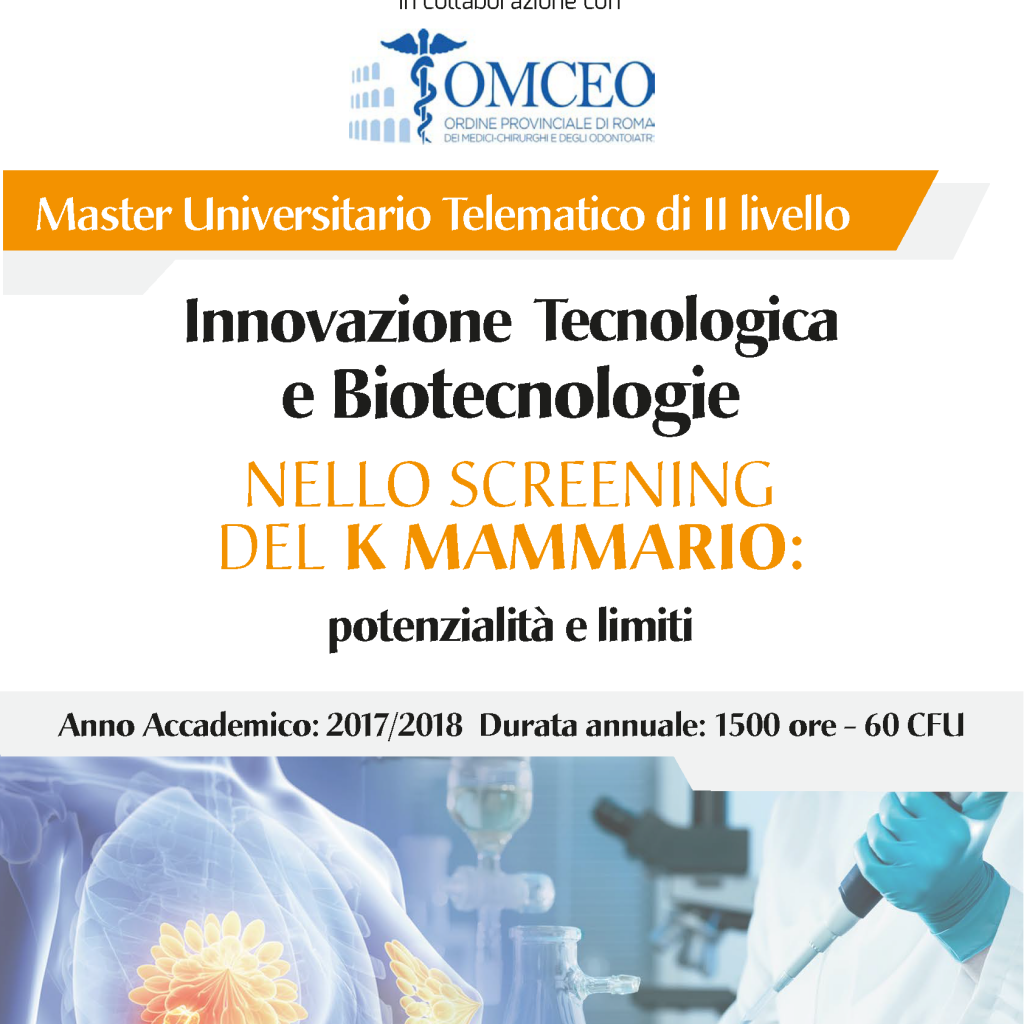 Master Universitario telematico di II° livello “Innovazione tecnologica e biotecnologie nello screening del K mammario: potenzialità e limiti“